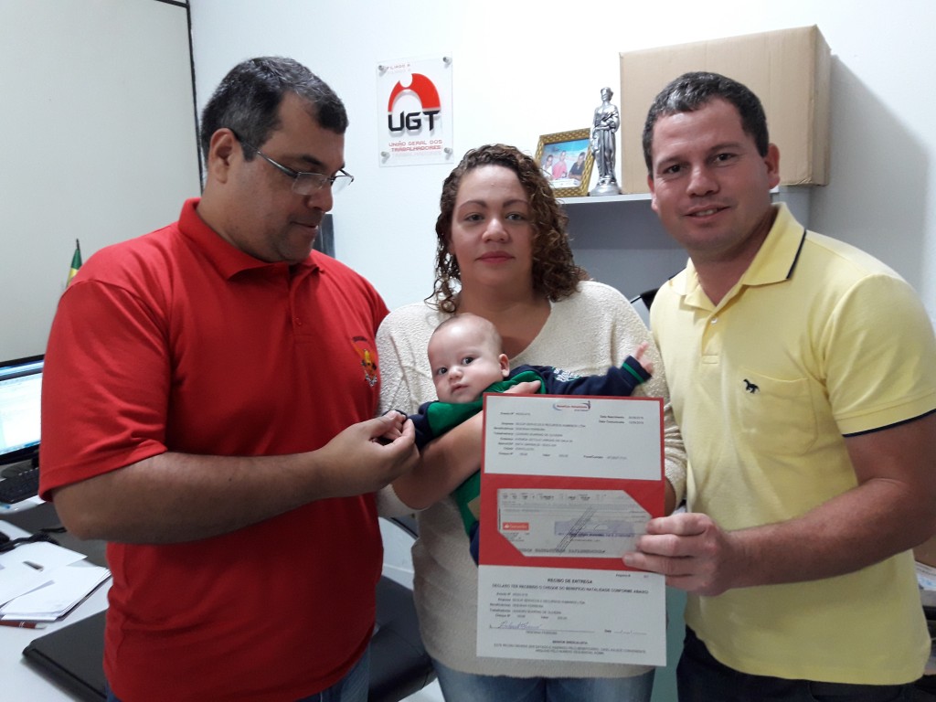 "Este benefício veio a caliar, será de grande ajuda para custear as despesas extras que tenos nestes primeiros meses com nosso bombeirinho Yuri. Nunca tinha conhecido um sindicato com benefício similar. Fiquei surpresa quando meu esposo relatou que deveríamos ir no sindicato receber este prêmio. Estou muito feliz e agradecida ao sindicato pela iniciativa." (Debora Ferreira).